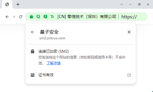 https网站是加密传输,从浏览器到服务器之间的传输的信息是密文,防止非法侦听、非法窃取和非法篡改!绿色地址栏展示网站可信身份。零信浏览器优先采用商密SM2算法,实现https安全连接。