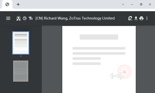 ZT Browser verifies the digital signature of the document in real time, and displays the trusted identity of the document, helping users identify genuine and fake documents and e-invoices.