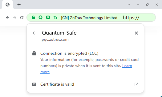 Includes and trust the ECC and SM2 Certificate Transparency Log System, verifies and display whether every SSL certificate embedded trusted signed certificate timestamp, to ensure the security and trust of SSL certificate.